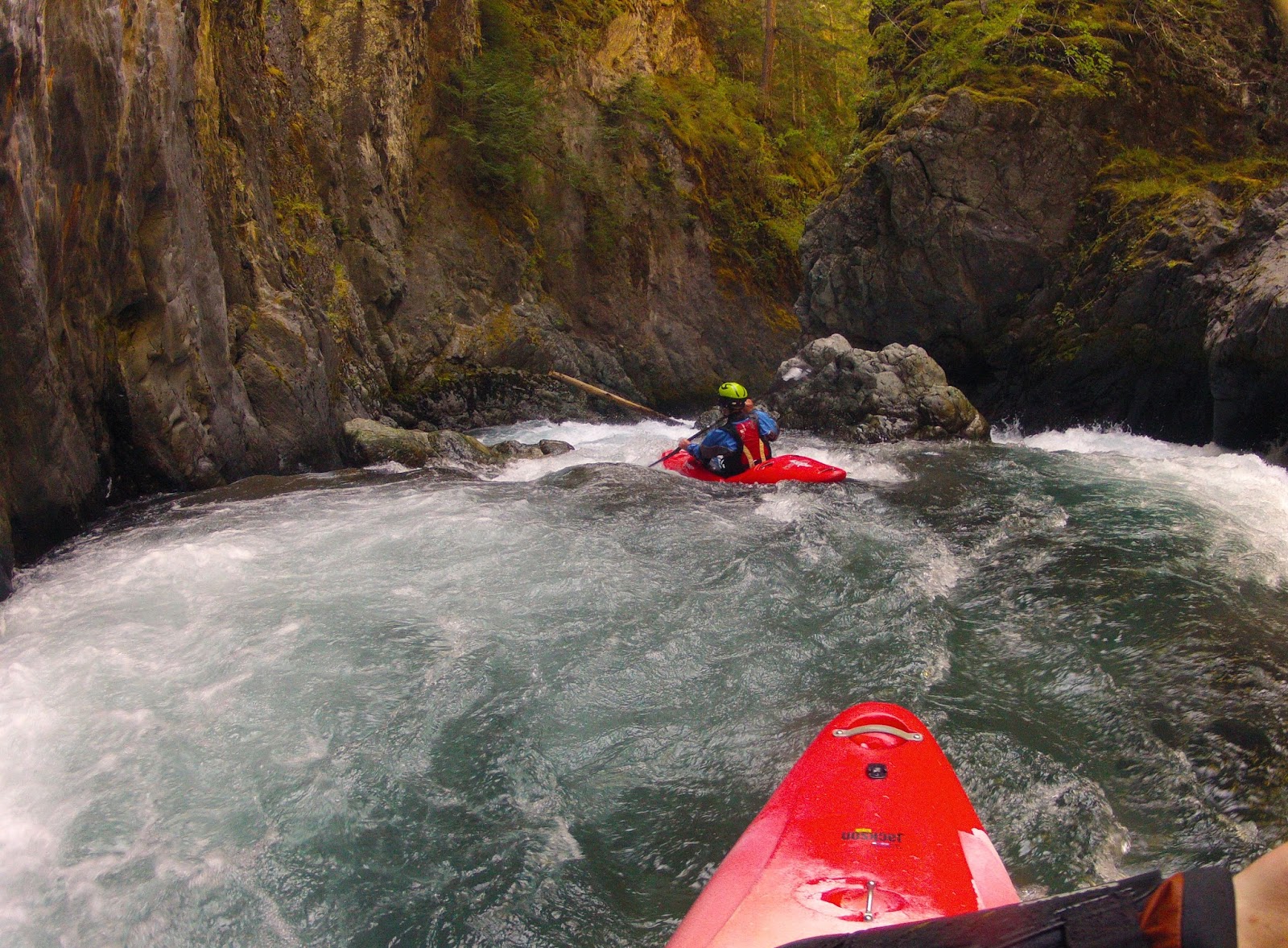 From the put in fun class II rapids begin in an open valley quickly giving way to class III and IV. As with any river on the Olympic Peninsula, keep an eye out for wood. Winter floods keep the wood constantly moving. The Grand Canyon proper begins with a sharp right turn with a strong eddy on the left. Wood has collected here in years past, so please approach with caution. Once through the gates, paddlers are immediately rewarded with stunning canyon views, crystal clear waters and beautiful challenging rapids within an inescapable box.